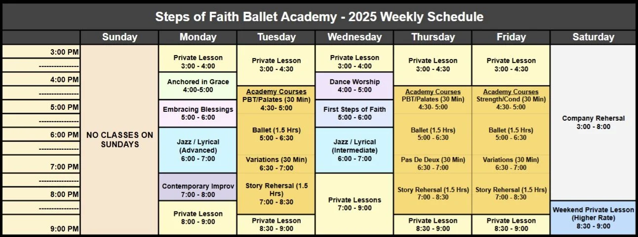 Academy Courses and Additional Steps of Faith Courses are offered Monday - Friday Only.
